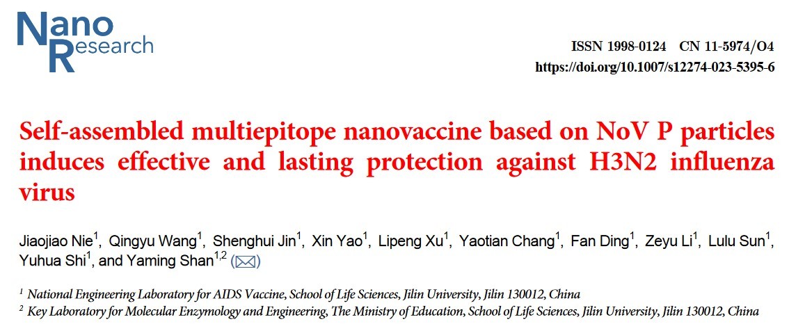 ✅雷竞技raybet在线-英雄联盟艾滋病疫苗国家工程实验室单亚明教授团队,在通用型流感疫苗研究领域取得新进展。相关研究内容以“Self-assembled multiepitope nanovaccine based on NoV P particles induces effective and lasting protection against H3N2 influenza virus”为题,于2023年2月16日在学术期刊《Nano Research》正式发表。