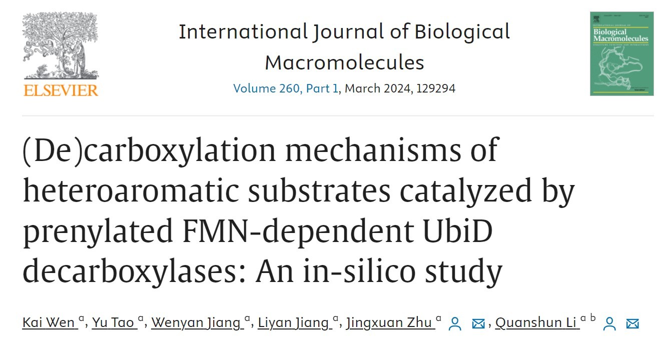 酶分子作为合成生物学及绿色生物制造的关键芯片,其催化具有高效性、精准性和条件温和等显著优势,促进了医药、材料、能源等绿色生物产业的创新发展,为本世纪初兴起的“第三次生物技术浪潮”提供了核心支撑。吉林大学分子酶学工程教育部重点实验室李全顺教授团队立足于国家双碳战略,基于计算机辅助策略,系统探究“碳”高值转化酶UbiD脱羧酶催化杂环底物脱羧/羧化反应的理论机制。以UbiD可逆脱羧酶催化CO2固定,同时能够实现高价值羧化产物杂芳族羧酸的生产,在医学、农业和化工行业中具有极高的应用价值。本研究中,以计算模拟策略为工具,确定了羧化反应中的质子转移步骤是整个可逆脱羧/羧化反应的限速步骤,为采用“稳定过渡态”策略进行UbiD酶的分子改造与设计提供理论支撑。相关研究“(De)carboxylation mechanisms of heteroaromatic substrates catalyzed by prenylated FMN-dependent UbiD decarboxylases: An in-silico study”发表于国际学术期刊International Journal of Biological Macromolecules。论文第一完成单位为✅雷竞技raybet在线-英雄联盟,博士生温凯为该论文的第一作者,李全顺教授、朱镜璇博士为该论文的共同通讯作者。