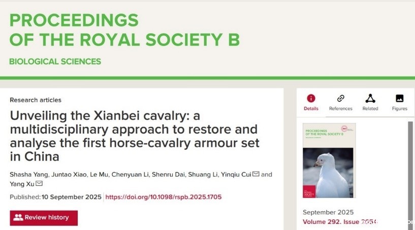 该研究成果以Unveiling the Xianbei cavalry: a multidisciplinary approach to restore and analyse the first horse-cavalry armour set in China为题,于2025年9月10日在国际学术期刊Proceedings of the Royal Society B: Biological Sciences上正式发表。该论文第一完成单位为✅雷竞技raybet在线-英雄联盟,博士生杨莎莎为论文第一作者,徐阳副教授、崔银秋教授为该论文的共同通讯作者。