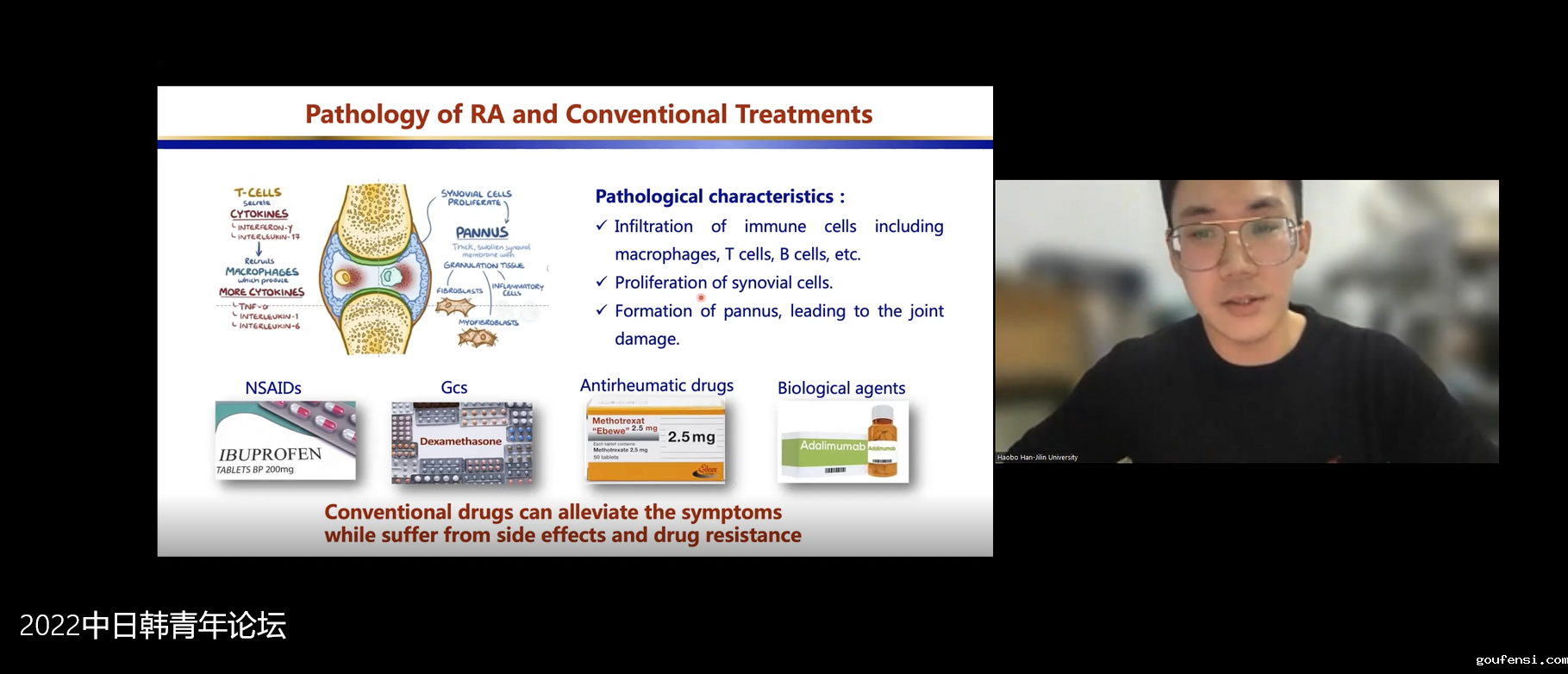 论坛围绕“生物医药与健康”和“生物医学工程和生物技术”议题,由来自韩国汉阳大学的Hyungshin Yim教授、Jae-Yeol Joo副教授、延世大学Na-Young Song 助理教授、韩国建国大学Jinhong Wie 助理教授、日本筑波大学陈国平教授、大阪大学吕玉泉副教授、日本横滨市立大学Yongchan Lee助理教授、日本兵库医科大学Hirosato Kanda助理教授、段韶琪博士后、德国马克斯普朗克生物物理研究所吴迪博士后、吉林大学金英花教授、田圃教授、韩浩博博士后做学术报告并与在线观众展开深入探讨。