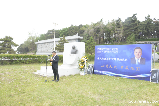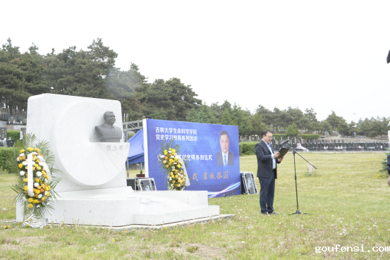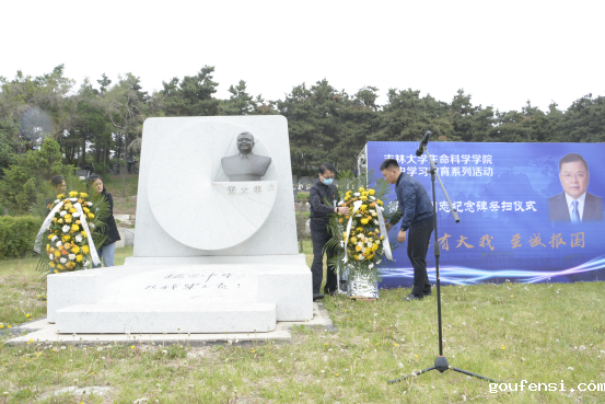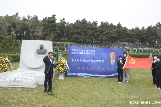 高山景行,薪尽火传。在习近平总书记对黄大年同志先进事迹作出重要指示四周年之际,为引导学院广大师生持续深入贯彻习近平总书记重要指示精神,提升传承弘扬“黄大年精神”工作质量,助推学院党史雷竞技官网app走深走实,凝聚起发展守正创新的内在驱动力。生命科学学院于5月23日在长春市九龙源公墓举办党史雷竞技官网app系列活动暨黄大年同志纪念碑祭扫仪式。生命科学学院党委书记白宇、党委副书记林相友、教工党支部代表和学生党支部代表参加了此次祭扫活动。本次祭扫活动由学院党委副书记兼副院长刘柏岩主持。