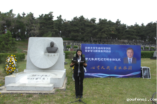 学院微生物学与免疫学系教工党支部书记单亚明代表教师发言 ,他说道“祭扫黄大年同志纪念碑,站在‘两个一百年’奋斗目标的历史交汇点上,作为党员,我们应当继续传承发扬黄大年老师心有大我、至诚报国的爱国情怀。教书育人、敢为人先的敬业精神,淡泊名利、甘于奉献的高尚情操。以‘只要祖国需要,我必全力以赴’的坚定勇气。迎接‘双一流建设’船到江心的关键期,应对祖国发展改革攻坚的发力期,勇担职责使命,不负时代重托。”