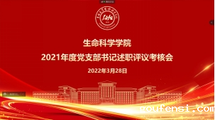 为了落实学校第十五次党代表大会精神,推动全面从严治党向基层延伸,提升基层党建工作质量,根据学校党委组织部《关于开展2021年度全校基层党组织书记抓基层党建述职评议考核的通知》要求,生命科学学院党委于3月28日下午开展线上2021年度党支部书记述职评议考核会。学院党委委员、全体党支部书记参加,院长于湘晖列席,会议由学院党委书记白宇主持。