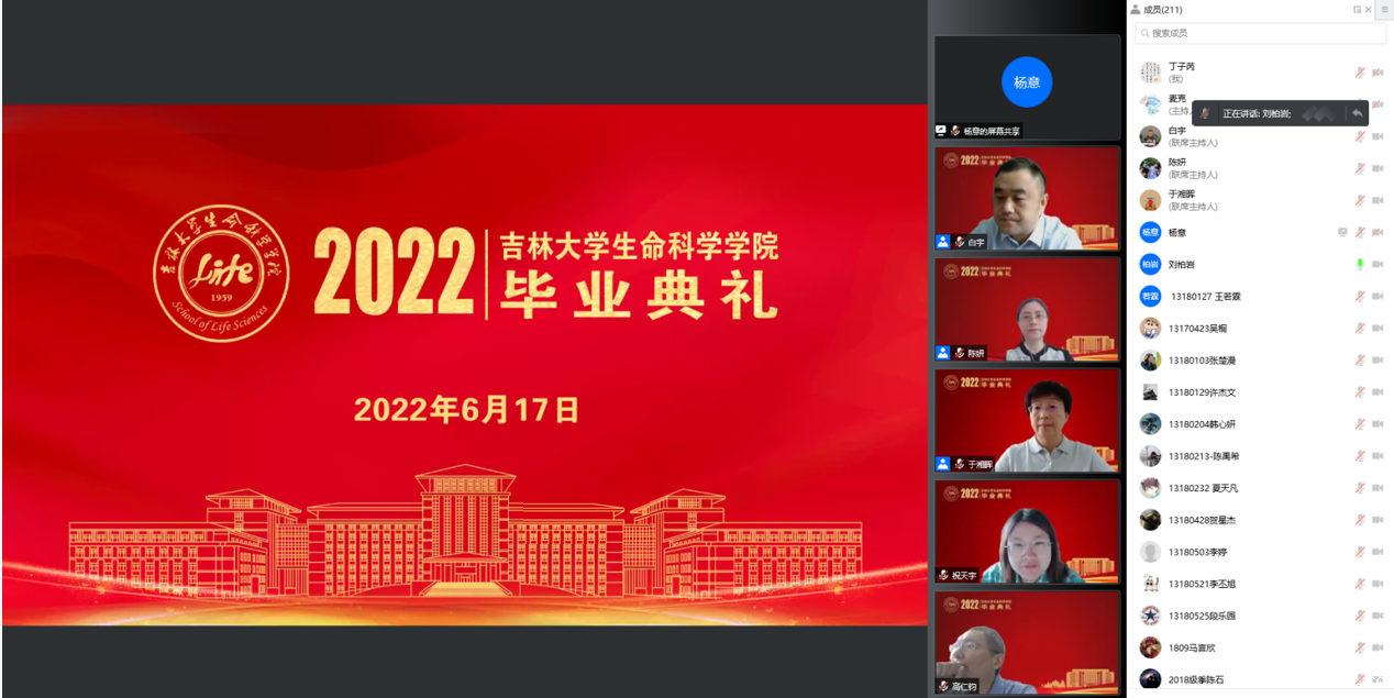 骊歌轻启,更向远方;复兴栋梁,青春向党。2022年6月17日9时,✅雷竞技raybet在线-英雄联盟2022届云端毕业典礼隆重举行。生命科学学院院长于湘晖,党委书记白宇,教学委员会主任委员滕利荣,学术委员会主任委员孔维,学位委员会主任委员、副院长马俊锋,党委副书记林相友,副院长崔银秋、陈妍、李全顺、崔帅,各系主任、教师代表、学生家长代表以及2022届全体毕业生参加会议。会议由学院党委副书记兼副院长刘柏岩主持。
