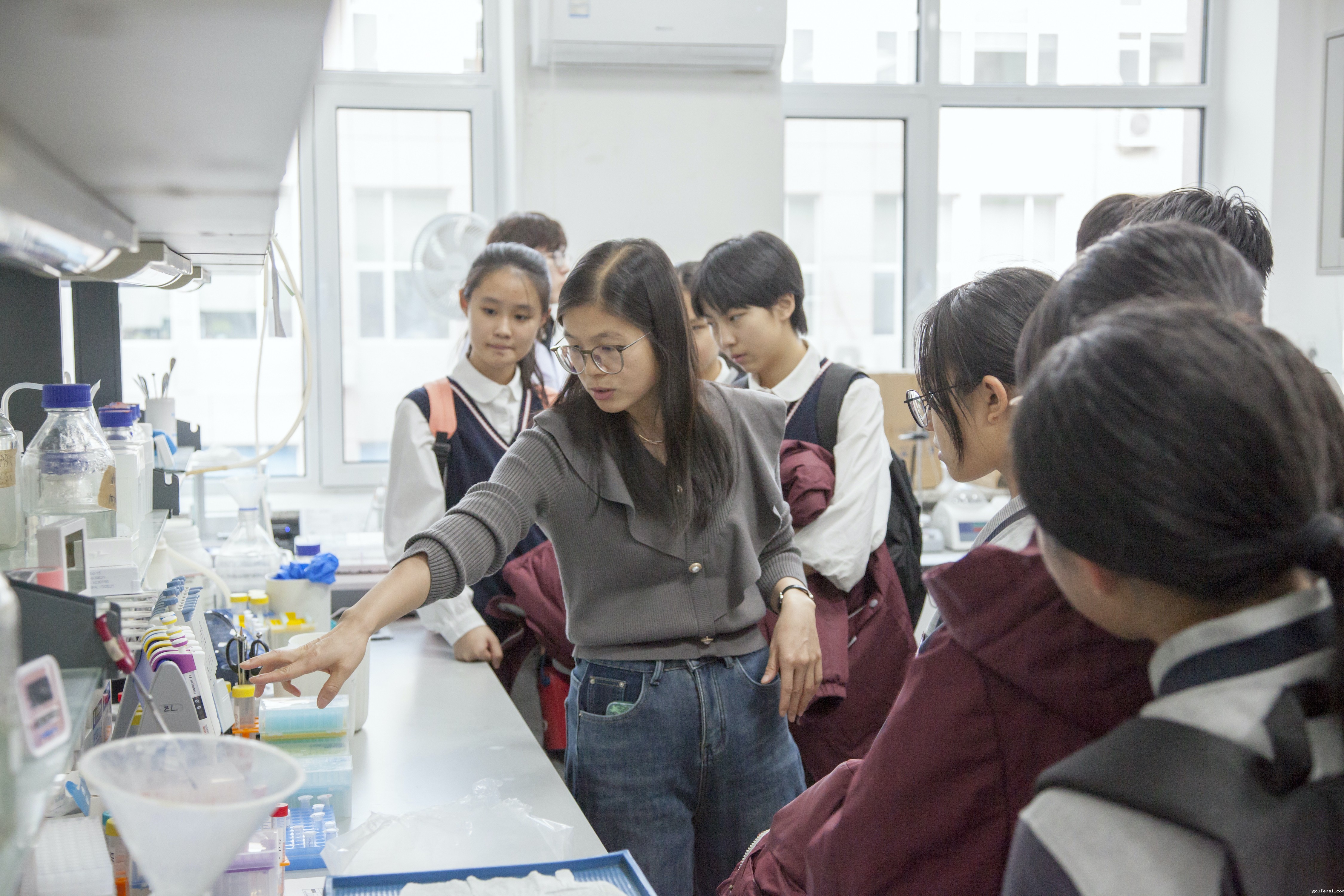 首先,生命科学学院院长于湘晖教授代表学院对到访的力旺实验中学师生表示热烈欢迎,希望同学们通过此次研学活动能够更近距离的接触生命科学,切身感受科学研究的独特魅力。随后,同学们在学校招办、学院教务办老师的带领下分组参观了学院教学及科研平台。生命科学学院国家级生物实验教学示范中心秘书邵妍及实验中心教学团队教师耐心细致地为同学们介绍了实验中心各本科教学实验室,让同学们进一步了解RAYBET雷竞技入口和相关专业知识,开拓视野、丰富学识。吴慧老师带领同学们参观了艾滋病疫苗国家工程实验室,详细介绍了电泳室、离心机室、细胞室等实验室的精密仪器,让大家对科学的严谨性有了更深刻的认识。韩浩博老师为同学们介绍了分子酶学工程教育部重点实验室的建设及科研进展,并设计演示实验供同学们参观学习。生物考古DNA实验室徐阳老师从同学们较为熟悉的DNA分子出发,由浅入深介绍了DNA提取和检测分析在分子法医学、分子考古等领域的应用。同学们认真聆听,兴趣盎然,在各位老师绘声绘色的讲解中了解生命的演变,探索科学的奥秘,在参观与实际操作中体验生命科学的乐趣。