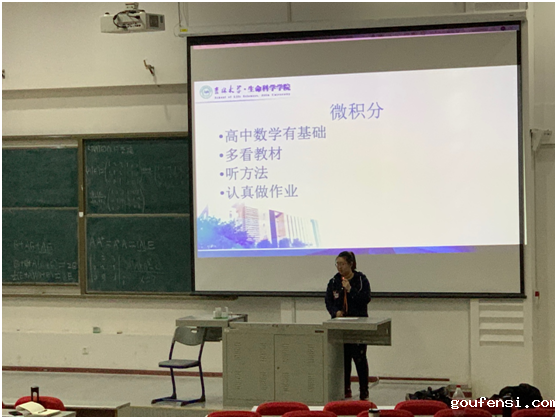 接下来由2019级生物科学类1班的李佳澎同学,为新生具体讲解微积分、医用大学物理、无机化学C、植物生物学四科的学习方法,同时也就如何平衡学习与工作及其他活动之间的关系做了详细的解答。