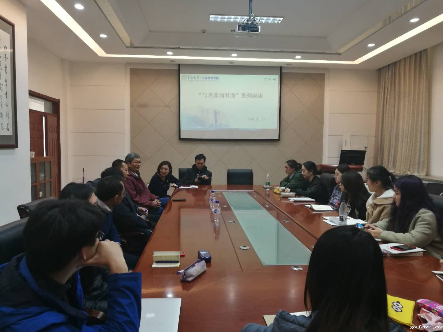 为提高学生科学素养,激发学生科研热情,使学生有机会近距离接触名家,生命科学学院于2018年4月13日下午4:00在生命科学楼335会议室开展“名家面对面”座谈会。本次座谈非常荣幸地邀请了中国科学院(上海)生物化学细胞生物学研究所(简称生化与细胞所)的徐国良院士、张雷研究员和侯法建研究员,与会成员有生命科学学院副院长陈妍等多名老师及2015、2016级唐班全体学生。