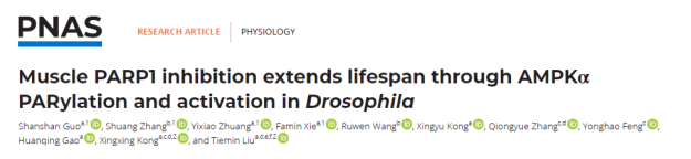 2023年3月23日,生命科学学院校友、复旦大学刘铁民教授团队在PNAS杂志上合作发表了一篇题为Muscle PARP1 inhibition extends lifespan through AMPKα PARylation and activation in Drosophila的论文,该研究指出在年老果蝇中抑制PARP1,可延长寿命,并发现在骨骼肌中敲低PARP1可通过下调AMPK的多糖ADP-核糖基化修饰、增加AMPKα的活性,后者通过上调PGC-1α和PINK1的表达导致线粒体周转加速,肌肉代谢增加、功能增强,阐释PARP1/AMPK参与精准调控衰老进程的分子机制。
