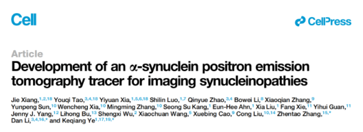 2023年7月7日,生命科学学院校友、上海交通大学Bio-X研究院李丹教授团队和深圳理工大学(筹)生命健康学院讲席教授、中国科学院深圳先进技术研究院脑认知与脑疾病研究所叶克强(原埃默里大学终身教授)团队、武汉大学人民医院张振涛教授合作,在 Cell 期刊发表了题为:Development of an a-synuclein positron emission tomography tracer for imaging synucleinopathies 的研究论文。