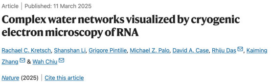 2025年3月11日,生命科学学院校友张凯铭(中国科学技术大学特任教授)/李珊珊(中国科学技术大学副教授)团队和美国斯坦福大学Wah Chiu/Rhiju Das团队合作在《Nature》杂志上发表了一项突破性研究,成功利用冷冻电镜技术(Cryo-EM)解析了RNA结构中的复杂水网络。这一研究不仅为RNA结构的稳定性和功能提供了新的见解,也标志着RNA结构生物学研究进入新的阶段。